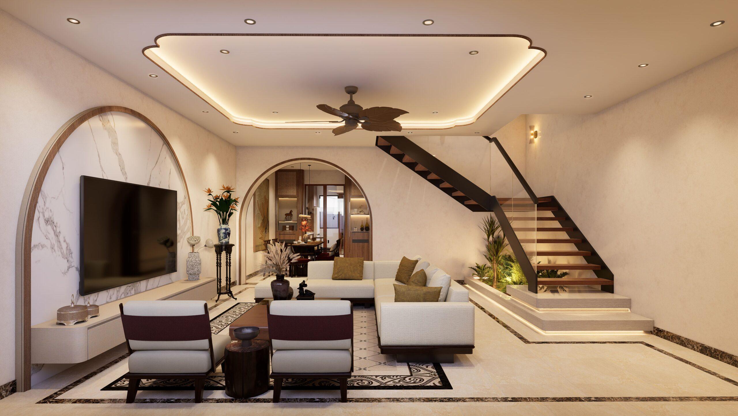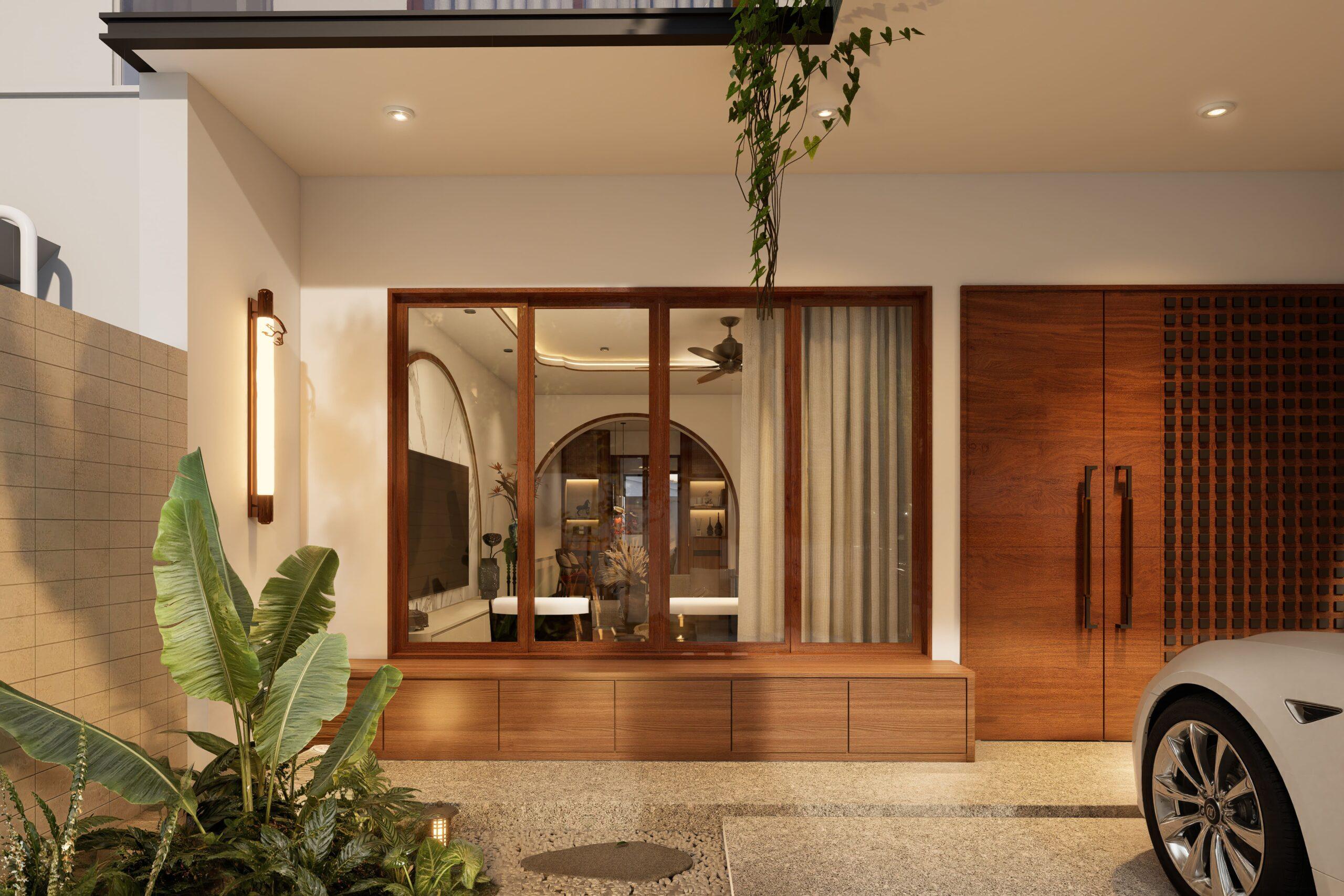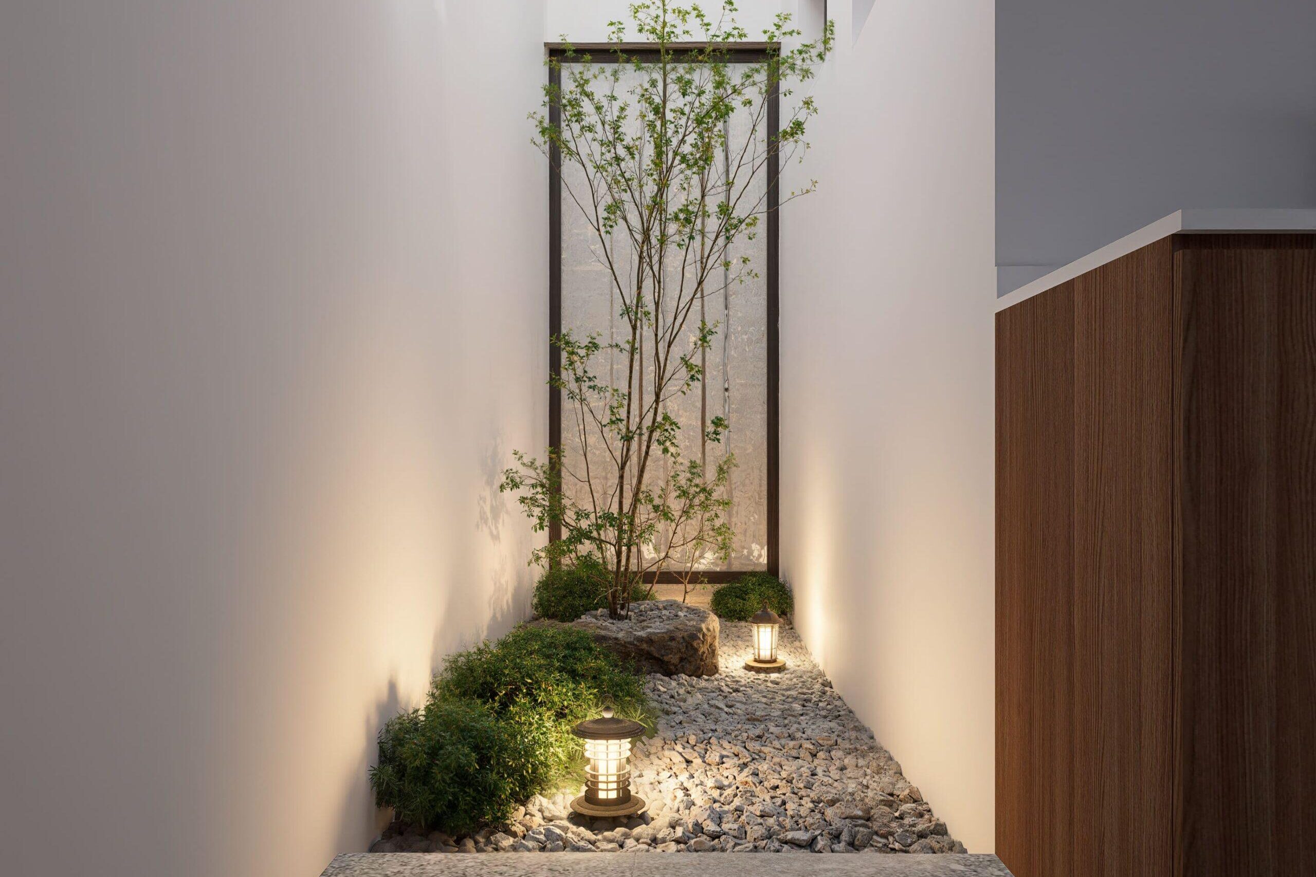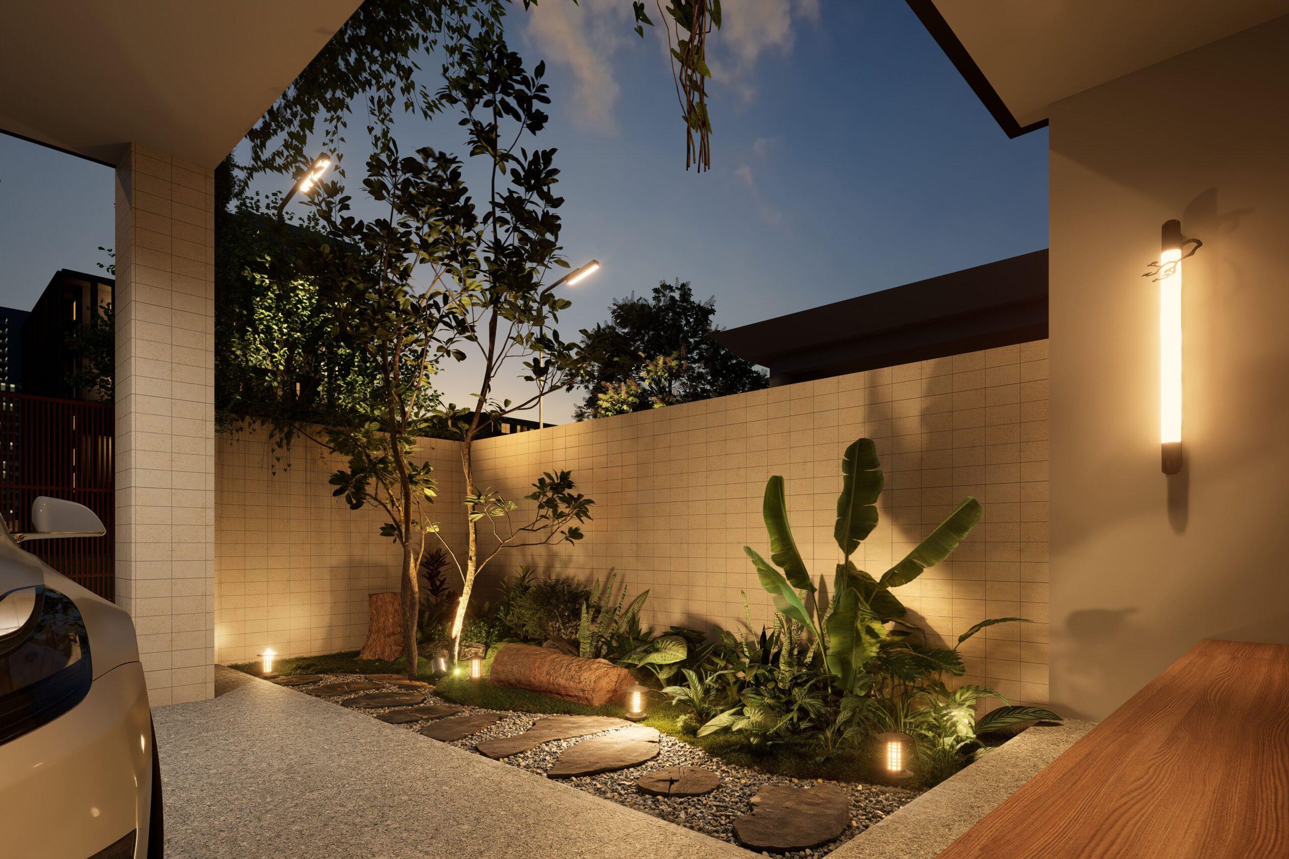 As its heart, a courtyeard introduces natural light and ventilation into the home, while modern landscape lighting transforms the space into a serene retreat by evening. This garden becomes a visual bridge between culture and nature, grounding the home in both beauty and belonging.