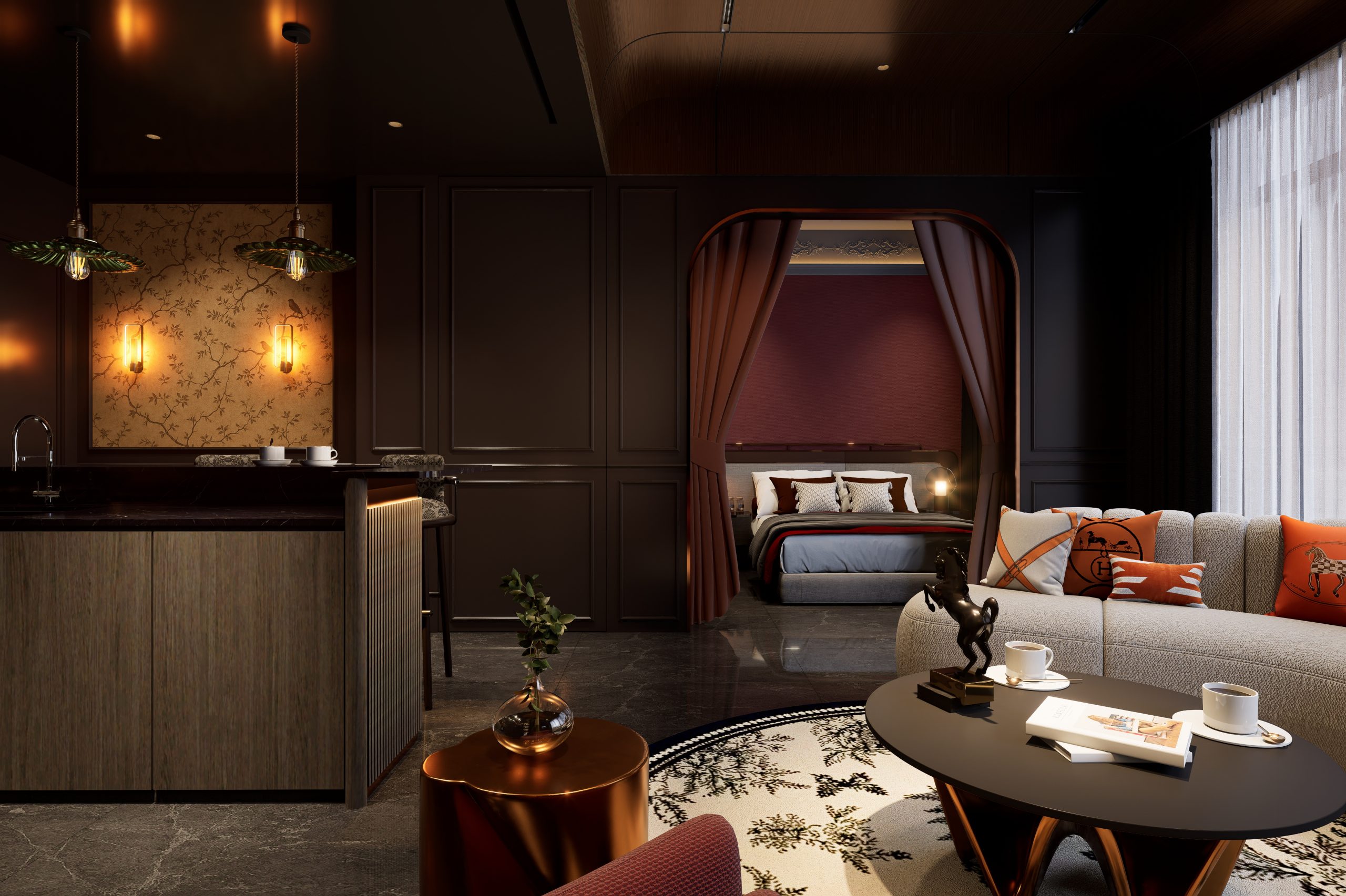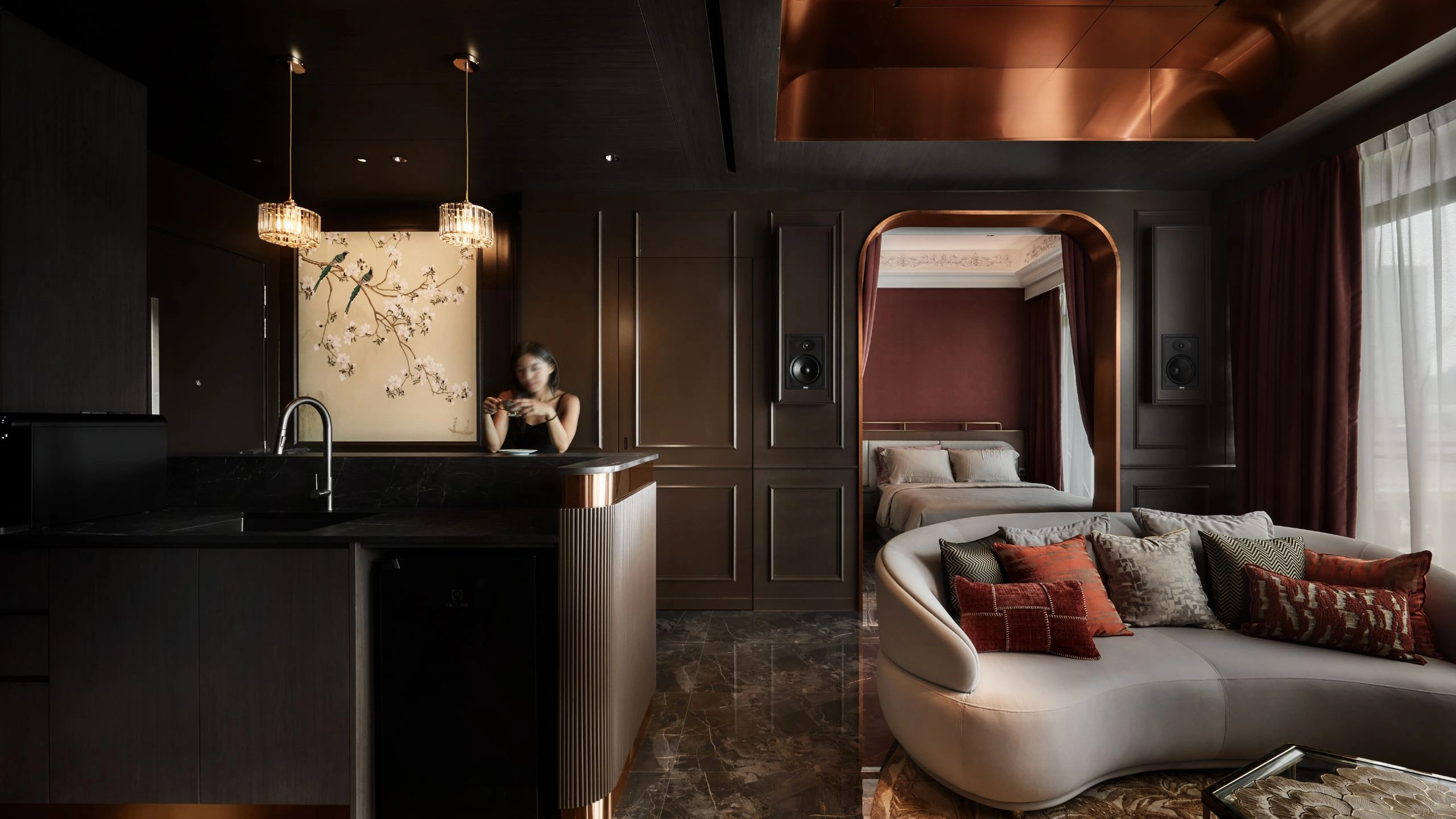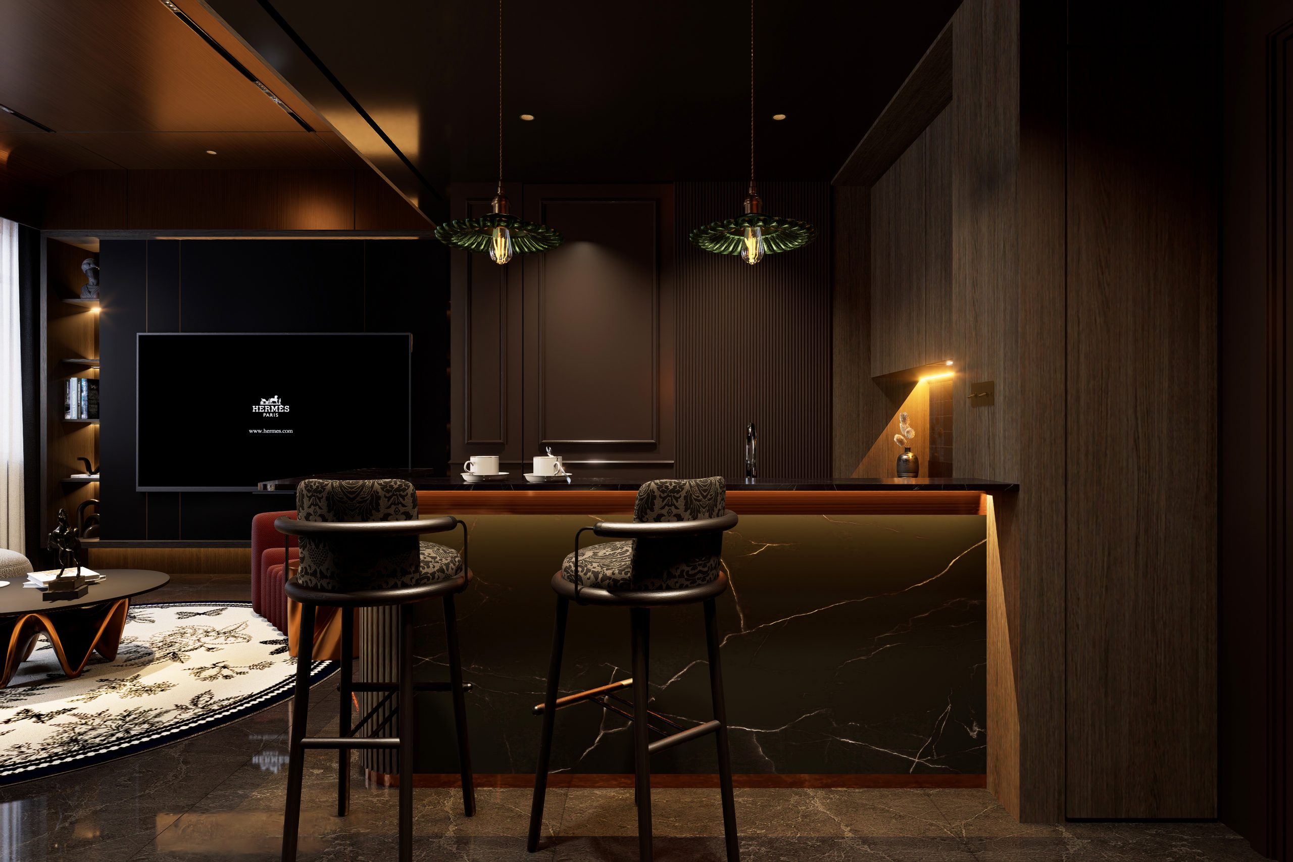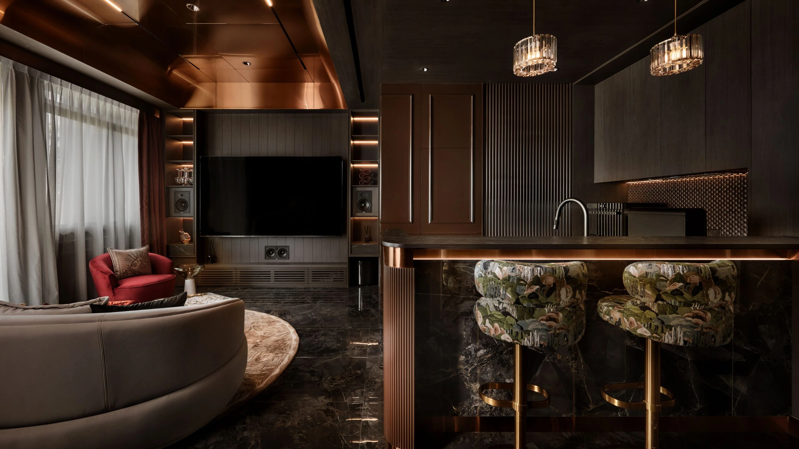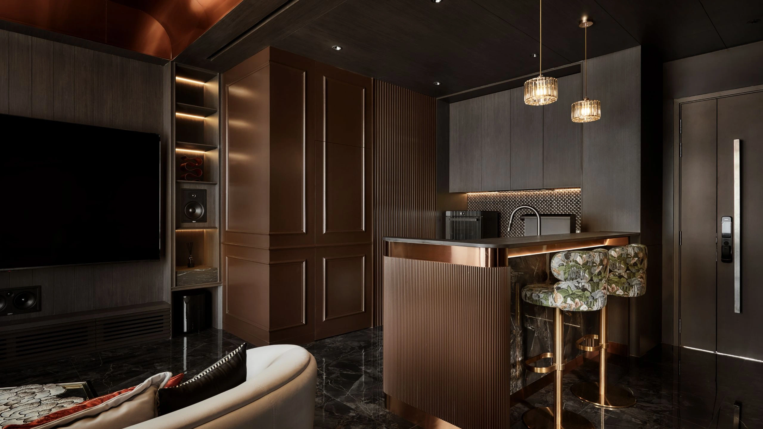 Initially acquired as an investment, the unit took on a new purpose when the entrepreneur owner decided to transform it into a private lounge for personal enjoyment. Designed not for daily accommodation but as an exclusive retreat, the space offers a warm, quiet, and luxurious atmosphere—ideal for unwinding beyond the confines of home and for spending quality time with close friends. His vision called for distinct experiences: a fully equipped home theatre, a lively karaoke area, a hidden speakeasy-style bar, and a bespoke guest bedroom—all tailored to create an intimate yet indulgent escape.